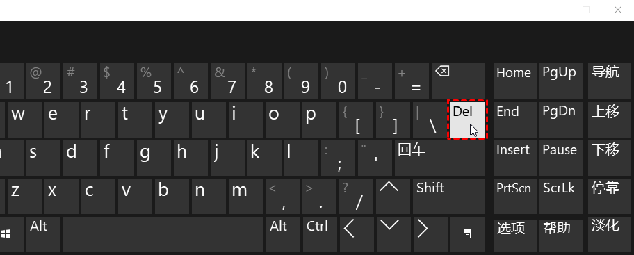 步驟2. 在現(xiàn)有物理鍵盤上同時按住“CTRL+ALT”,然后用鼠標(biāo)在屏幕鍵盤上單擊“Del”。