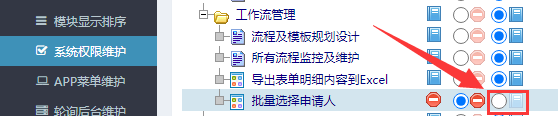 :工作流加班申請(qǐng)如何批量選擇多個(gè)加班人![]() 先分配批量選擇申請(qǐng)人的權(quán)限,前往設(shè)置-系統(tǒng)權(quán)限維護(hù),找到下圖位置開(kāi)啟: