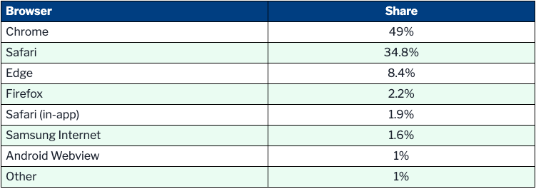 截至目前,該分析頁面(https://analytics.usa.gov/)顯示過去 90 天的瀏覽器流量情況如下: