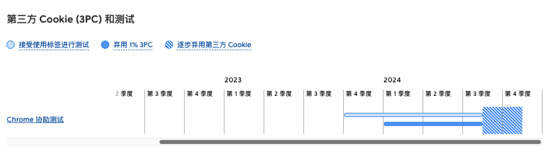 近日,谷歌軟件工程師 Johann Hofmann 在一封內(nèi)部郵件中與同事分享了禁用第三方 Cookie 計劃,他們計劃從 2024 年第一季度進(jìn)行為期 1% 的初始測試期,然后在與英國競爭與市場監(jiān)管局(CMA)進(jìn)行磋商后,計劃從 2024 年第三季度開始逐步淘汰。
