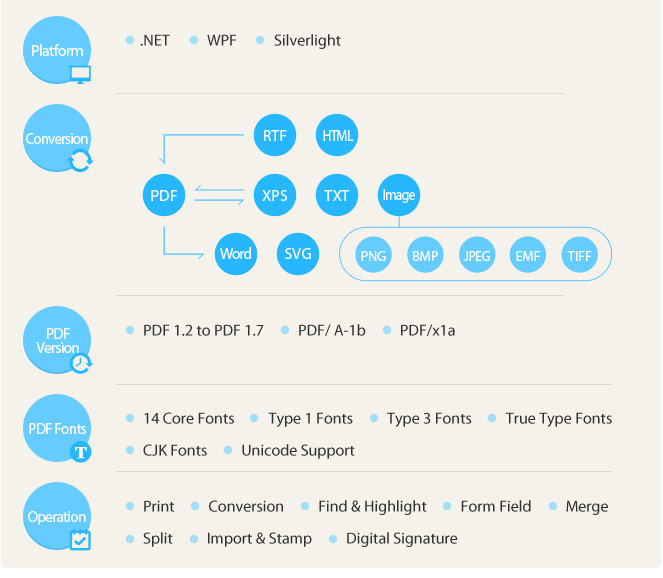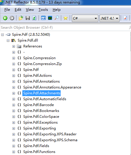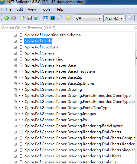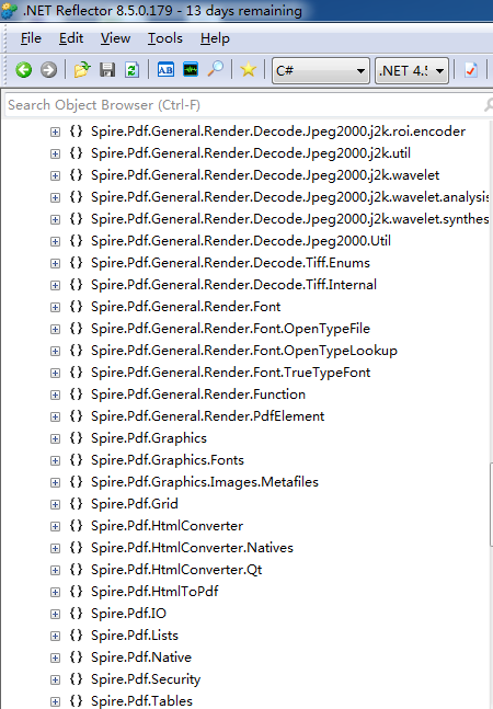 Spire.PDF for .NET支持將HTML,RTF,XPS,文本和圖像轉(zhuǎn)換為具有高效性能的PDF文檔。 開發(fā)人員可以將PDF轉(zhuǎn)換為Word,XPS,SVG,EMF,JPG,PNG,BMP,TIFF,文本格式。 此外,隨著Spire.Doc for .NET和Spire.XLS for .NET,開發(fā)人員可以將Word(Doc / Docx),Excel(Xls / Xlsx)和XML轉(zhuǎn)換為PDF。 此組件的功能還是非常強(qiáng)大的,每個開發(fā)人員都知道,產(chǎn)品做得不好,想要客戶的錢還是很難的??匆幌陆M件的主要功能: 1.文本格式,多語言支持,文本對齊等。 2.筆和畫筆將形狀元素,文本,圖像繪制成PDF文檔。 3.圖層,透明圖形,顏色空間和條形碼創(chuàng)建可以呈現(xiàn)為PDF文檔。 4.PDF / A-1b和PDF / x1a:2001合規(guī)性,可以應(yīng)用這兩種標(biāo)準(zhǔn)。 5.添加標(biāo)量/矢量圖像和掩碼,并將它們放在指定的位置。 6.Spire.PDF for .NET可支持表和表樣式 7.插入交互式元素,包括注釋,操作,JavaScript,附件,書簽和指定地點(diǎn)和外觀。 以上對組件的相關(guān)背景做了一個簡單的介紹,并且對組件的功能和使用情形做了簡單的羅列。 二.Spire.PDF for .NET相關(guān)類的解析:在這里主要介紹Spire的Spire.PDF組件部分,此組件有免費(fèi)的和收費(fèi)的兩個版本,免費(fèi)的版本在功能沒有收費(fèi)的多,但是穩(wěn)定性和實(shí)用性還是較高的。我們具體看一下此組件的主要的類和方法,這里是主要介紹PDF的操作,就先看一下有關(guān)PDF的操作類和方法。 這里看以下命名空間的主要類: