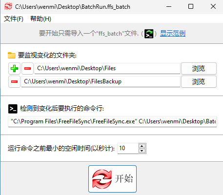 設(shè)置時間后,點擊【開始】后,則軟件會在后臺監(jiān)控文件夾的變化,并且自動同步。