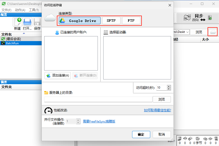 遠(yuǎn)程同步除了支持本地同步外,還支持googleDriver和ftp的同步,在