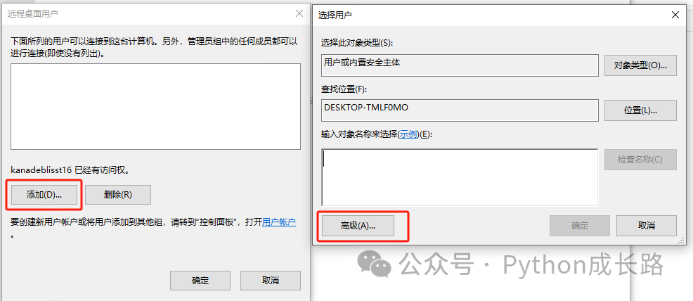 給用戶添加遠程連接權(quán)限設(shè)置-》系統(tǒng)-》遠程桌面-》選擇可遠程訪問這臺電腦的用戶 ![]() ![]() ![]() 修改組策略