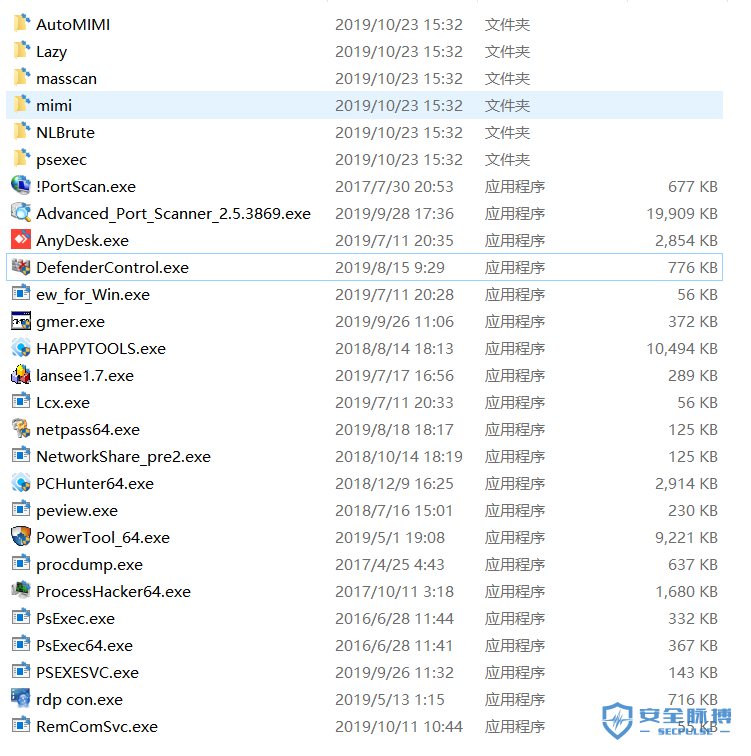 對(duì)從事勒索病毒活動(dòng)的攻擊者來講,同樣存在上述現(xiàn)象,攻擊者可以使用大量的工具進(jìn)行攻擊活動(dòng)。深信服安全團(tuán)隊(duì)處理過大量的勒索病毒案例,從攻擊現(xiàn)場(chǎng),捕獲了大量的工具,這些工具都是攻擊者所使用的。當(dāng)然,這些工具本身也可以被用于正常用途。