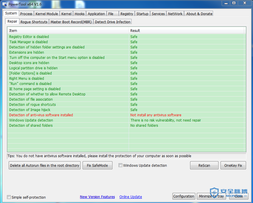 PowerTool PowerTool 一款免費(fèi)強(qiáng)大的進(jìn)程管理器,支持進(jìn)程強(qiáng)制結(jié)束,可以Unlock占用文件的進(jìn)程,查看文件/文件夾被占用的情況,內(nèi)核模塊和驅(qū)動(dòng)的查看和管理,進(jìn)程模塊的內(nèi)存的dump等功能。最新版還支持上傳文件在線掃描病毒。支持離線的啟動(dòng)項(xiàng)和服務(wù)的檢測(cè)和刪除,新增注冊(cè)表和服務(wù)的強(qiáng)刪功能,可在PE系統(tǒng)下清除感染MBR的病毒(如鬼影等)。