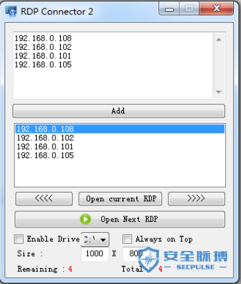 Rdp_Connector RDP連接工具,勒索病毒攻擊活動(dòng)中,RDP弱密碼作為一個(gè)很嚴(yán)重的問題,經(jīng)常會(huì)被利用。