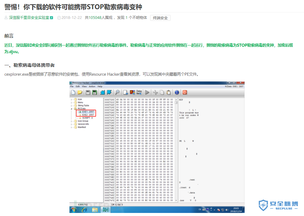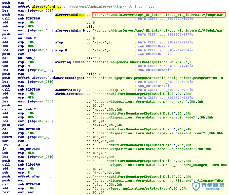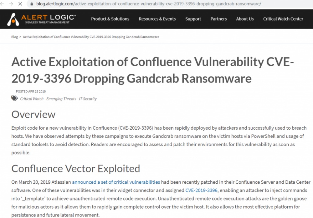 永恒之藍(lán)漏洞(MS17-010) 2017年5月12日WannaCry勒索病毒在全球爆發(fā),勒索病毒利用MS17-010永恒之藍(lán)漏洞進(jìn)行傳播感染。短時(shí)間內(nèi)感染全球30w+用戶,包括學(xué)校、醫(yī)療、政府等各個(gè)領(lǐng)域。 Confluence漏洞(CVE-2019-3396) Confluence是一個(gè)專業(yè)的企業(yè)知識(shí)管理與協(xié)同軟件,可用于構(gòu)建企業(yè)wiki。2019年4月份,深信服安全團(tuán)隊(duì)捕獲到利用Confluence新型漏洞傳播勒索病毒的事件,已有政企機(jī)構(gòu)受到攻擊,黑客團(tuán)伙通過漏洞利用入侵服務(wù)器,上傳Downloader腳本文件,連接C&C端下載運(yùn)行勒索病毒。通過樣本中提取的IP進(jìn)行關(guān)聯(lián),該攻擊事件與利用Confluence漏洞(CVE-2019-3396)傳播GandCrab勒索病毒攻擊事件有密切的關(guān)聯(lián)。 此外,深信服安全團(tuán)隊(duì),也關(guān)注到了國(guó)外廠商也發(fā)生類似的入侵事故。 參考鏈接:https://blog.alertlogic.com/active-exploitation-of-confluence-vulnerability-cve-2019-3396-dropping-gandcrab-ransomware/ JBoss反序列化漏洞(CVE-2017-12149) JBoss反序列化漏洞(CVE-2013-4810) JBoss默認(rèn)配置漏洞(CVE-2010-0738) 由于大部分服務(wù)器都會(huì)對(duì)外提供服務(wù),這意味著如果系統(tǒng)、應(yīng)用漏洞沒有及時(shí)修補(bǔ),攻擊者就可能乘虛而入。我們發(fā)現(xiàn)有不少的勒索病毒,會(huì)嘗試攻擊Weblogic、JBoss、Tomcat等Web應(yīng)用,之后通過Web應(yīng)用入侵Windows服務(wù)器,下載執(zhí)行勒索病毒。 ![]() 注:上圖顯示了某款勒索軟件所內(nèi)置的JBoss默認(rèn)配置漏洞利用代碼。 Tomcat任意文件上傳漏洞(CVE-2017-12615) ![]() 注:上圖顯示了某款勒索軟件所內(nèi)置的Tomcat任意文件上傳漏洞利用代碼。