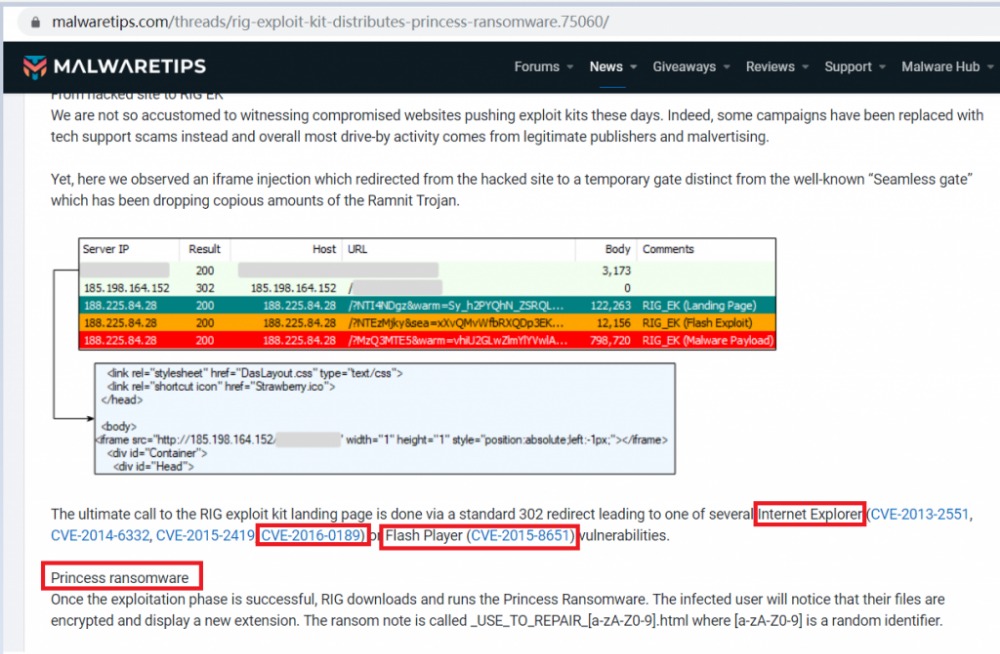 Nexus Repository Manager 3遠(yuǎn)程代碼執(zhí)行漏洞(CVE-2019-7238) Flash遠(yuǎn)程代碼執(zhí)行漏洞(CVE-2018-4878) Flash類型混淆漏洞(CVE-2015-7645) Flash越界讀取漏洞(CVE-2016-4117) Flash Player (CVE-2015-8651) Internet Explorer內(nèi)存損壞漏洞(CVE-2016-0189) ![]() 一款叫Princess(“公主”)的勒索軟件,就集成了上訴多個(gè)漏洞利用代碼。 參考鏈接: https://malwaretips.com/threads/rig-exploit-kit-distributes-princess-ransomware.75060/ Spring Data Commons遠(yuǎn)程代碼執(zhí)行漏洞(CVE-2018-1273) 社工與爆破除了工具和漏洞,社工與爆破,也在勒索病毒活動(dòng)中扮演了十分重要的角色。 ![]()