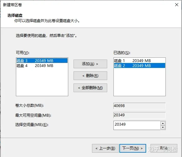 默認選擇了磁盤3,我們把磁盤4也選中添加進來,然后下一步