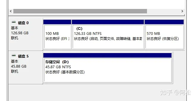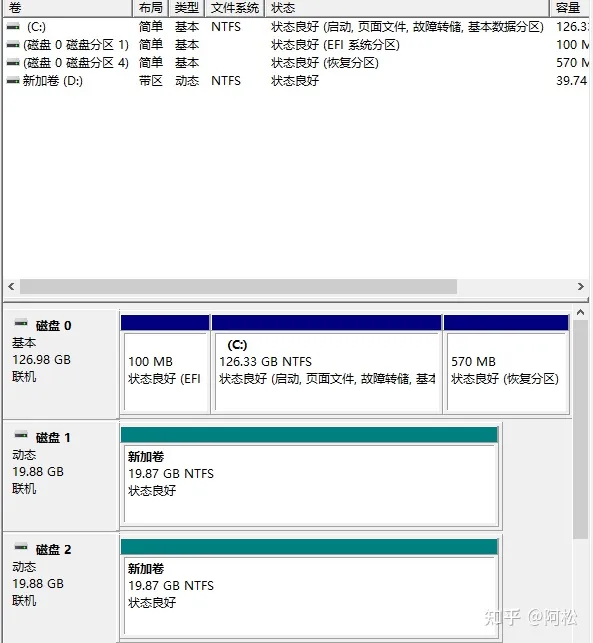 可以看到磁盤管理里面磁盤1和磁盤2都變成綠色了