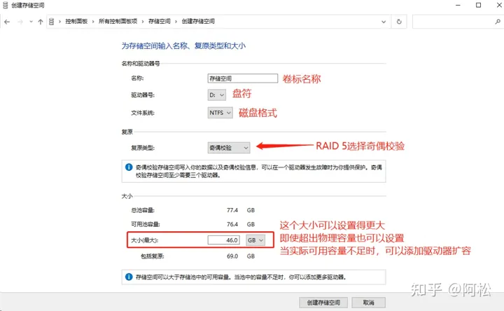 選擇【創(chuàng)建新的池和存儲空間】