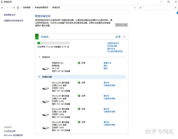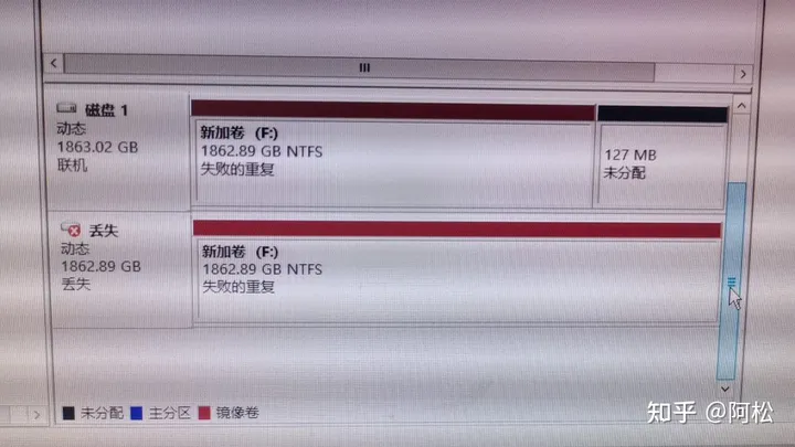 注意雖然設(shè)置的是15TB,但是我四個磁盤加起來只有80G 存儲空間可以大于存儲池中的可用容量。當池中的客量不足時,你可以添加更多驅(qū)動器 另外我用物理機測試過數(shù)據(jù)冗余保護,我將兩塊2T數(shù)據(jù)盤組建了RAID 1,往里面存入了部分學習資料 然后將系統(tǒng)盤重新安裝系統(tǒng),在新系統(tǒng)中可以識別到之前組建的鏡像卷,包括我的學習資料都全部在 另一個測試是我拔掉了其中一塊硬盤(關(guān)機狀態(tài)),重新啟動后磁盤管理顯示【丟失】,但是盤符還在,資料也可以訪問(如下圖),有舊硬盤的小伙伴可以折騰起來了