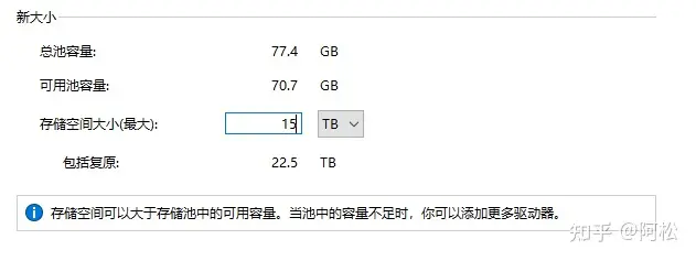 存儲空間最大值我改成15TB,磁盤5也顯示的15TB