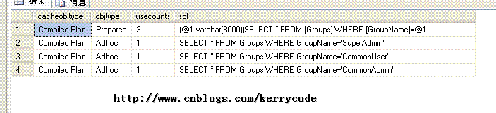 Summary:動態(tài)批處理不能訪問定義在批處理里的局部變量 。 SP_EXECUTESQL 可以有輸入輸出參數(shù),比EXECUTE靈活。 下面我們來看看EXECUTE , SP_EXECUTESQL的執(zhí)行效率,首先把緩存清除執(zhí)行計劃,然后改變用@GroupName值SuperAdmin、CommonUser、CommonAdmin分別執(zhí)行三次。然后看看其使用緩存的信息