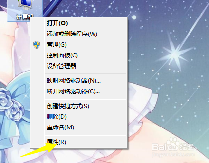 我們首先鼠標鼠標右擊計算機,彈出計算機屬性點擊屬性。