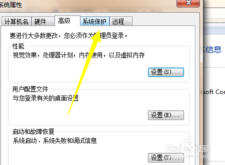 在高級設置屬性下我們點擊系統(tǒng)保護。