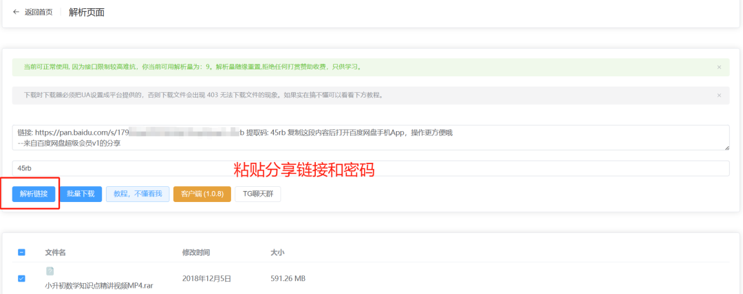 優(yōu)點:因為不用登錄自己的網(wǎng)盤賬號,對自己的賬號沒有風險。 注意事項:系統(tǒng)會隨機給你一定的解析量(我是直接給了10),在網(wǎng)頁頂部能看到,如果用完了就不定時去看看,有了就可以繼續(xù)使用。 次數(shù)用完直接更換機器或者其他辦法大家可以去嘗試,看是否可以! 該文章在 2024/1/31 16:14:11 編輯過 |