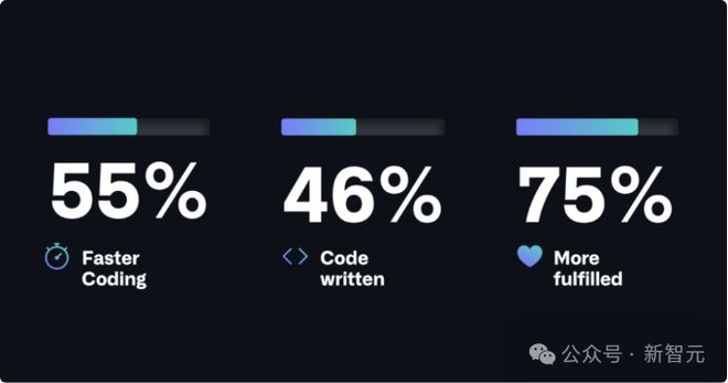 圖中展示了 4 年中的代碼改動率——編寫后不到兩周就被撤銷或更新的代碼行百分比,——深色部分表示受 AI 代碼生成工具影響的時間。 調(diào)查中同樣發(fā)現(xiàn),「新增代碼」和「復(fù)制粘貼代碼」的比例相對于「更新」、「刪除」和「移動」代碼的比例在增加。 這貌似說明開發(fā)人員在大量使用 Copilot 等 AI 代碼生成工具,快速生成了大量代碼,但隨后發(fā)現(xiàn)了代碼中的問題,——GitClear 的報告預(yù)計在 2024 年,這個代碼改動率將達到 2021 年 AI 出現(xiàn)前的兩倍。 另外一點就是,AI 代碼生成工具不太理會人類程序員的一些原則(比如「重復(fù)造輪子」這件事),也就造成了代碼庫中越來越多的重復(fù)代碼。 ——不過很多碼農(nóng)都是「CV 程序員」,這樣看來,AI 也算是學到了精髓。 2023 年,GitHub Copilot 大放異彩。在短短不到兩年時間內(nèi),這款 AI 編程助手從一個「原型」迅速成長為「核心工具」,被全球數(shù)百萬開發(fā)者在數(shù)十萬家企業(yè)中廣泛應(yīng)用,開啟了 coding 的新時代。 對此,GitHub 發(fā)表了多篇研究論文,探討了 AI 在軟件開發(fā)領(lǐng)域的增長與影響。 速度提升 55%,GDP 增加 1.5 萬億 研究表明,使用 Copilot 的開發(fā)者編碼速度可以提高「55%」,導致總的代碼量增加了 46%,并且為全球創(chuàng)造了 1.5 萬億美元 GDP。