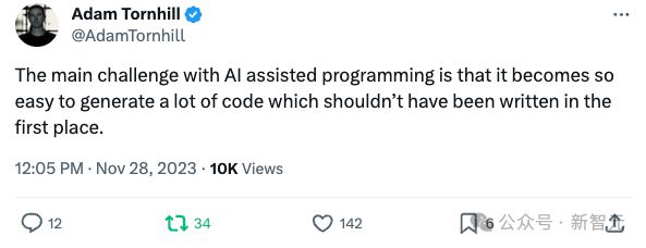 使用 Copilot 可以使代碼編寫速度提高 55%,但如果是本就不應(yīng)該編寫的代碼呢? 如《Clean Code: A Handbook of Agile Software Craftsmanship》一書的作者 Robert Martin 所說,代碼的閱讀時間是編寫時間的十倍??焖倬帉懺愀獾拇a,意味著給后來的代碼閱讀者帶來了巨大的負擔。 此外,AI 代碼助手還帶來了其他問題: 比如代碼助手擅長生成代碼,卻不擅長修改;當有多個生成工具給出建議時,評估哪個更好是很耗費時間的; 最后,AI 代碼助手與開發(fā)者的動機可能不同,對于代碼優(yōu)化來說,AI 往往傾向于提出最有可能被接受的建議。 所以,相比于經(jīng)驗更豐富的開發(fā)人員,初級開發(fā)者更傾向于接受 AI 給出的代碼建議: