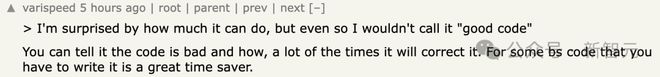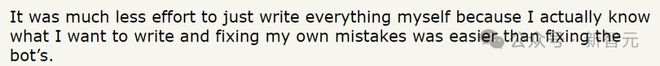大佬型:「寫下所有東西其實要花的功夫少得多,因為我知道自己想寫什么,而且修正自己的錯誤比修正機器人的錯誤更容易」。