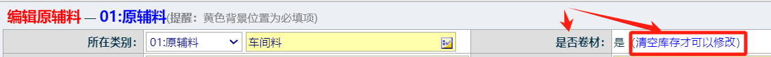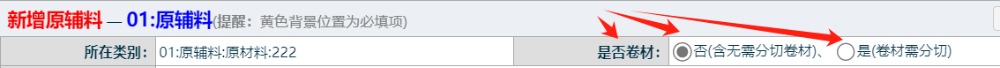 在物料基礎(chǔ)新增或編輯時可以選擇或修改卷料屬性