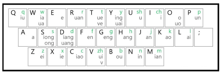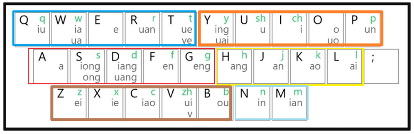 雙拼是拼音與五筆的結(jié)合體,它把五筆的字根換成了拼音的零部件(聲韻母),使用五筆的玩法來(lái)玩拼音。對(duì)照五筆字根表和雙拼碼表我們能找到相似之處,它們都是通過(guò)半成品的字根或“音根”來(lái)快速拼出漢字。