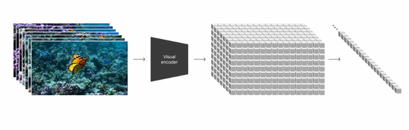 patches 是從大語言模型中獲得的靈感,大語言模型范式的成功部分得益于使用優(yōu)雅統(tǒng)一各種文本模態(tài)(代碼、數(shù)學(xué)和各種自然語言)的 token。大語言模型擁有文本 token,而 Sora 擁有視覺分塊(patches)。OpenAI 在之前的 Clip 等工作中,充分實(shí)踐了分塊是視覺數(shù)據(jù)模型的一種有效表示(參考論文:An image is worth 16x16 words: Transformers for image recognition at scale.)這一技術(shù)路線。而視頻壓縮網(wǎng)絡(luò)的工作就是將高維度的視頻數(shù)據(jù)轉(zhuǎn)換為 patches,首先將視頻壓縮到一個(gè)低緯的 latent space,然后分解為 spacetime patches。