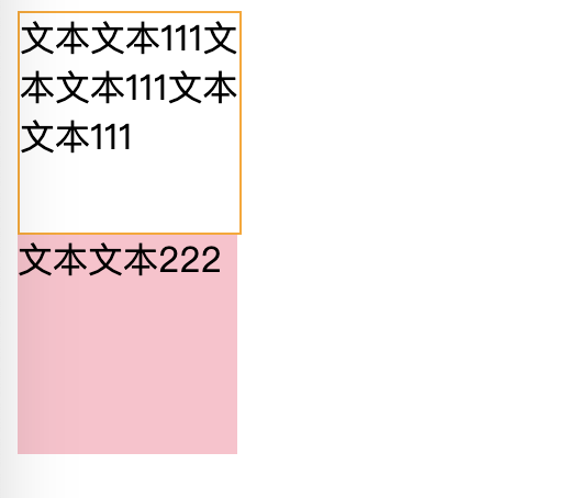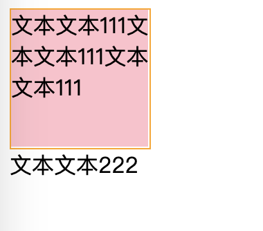可以看到, 將第一個(gè)div用BFC容器包裹后(類似于閘門的作用): <div style="display: flow-root;"> <div style="width: 100px; height: 100px; border: 1px solid orange; float: left;"> <span>文本文本111文本文本111文本文本111</span> </div> </div> <div style="width: 100px; height: 100px; background: pink;"> <span>文本文本222</span> </div> 頁(yè)面就變成了下面這個(gè)樣子: