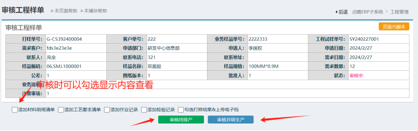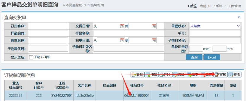 [點(diǎn)晴永久免費(fèi)OA]點(diǎn)晴ERP-樣品交貨提醒單審核操作