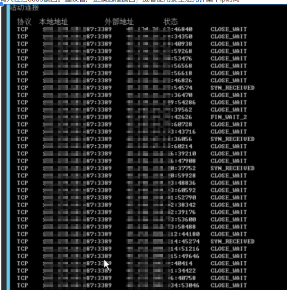 2、遠(yuǎn)程端口被掃 netstat -aon | findstr "3389"