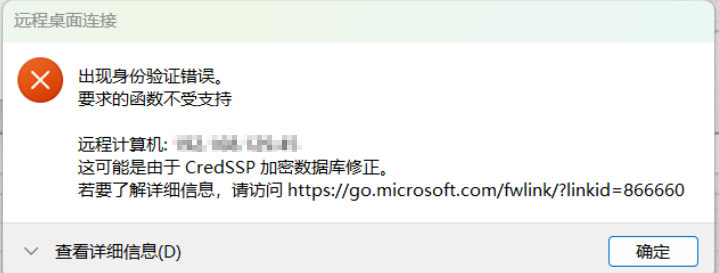 二、Windows11家庭中文版連接遠(yuǎn)程桌面,出現(xiàn)身份驗證錯誤