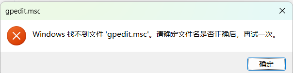 根據(jù)網(wǎng)上的教程(https://baijiahao.baidu.com/s?id=1765612450796507368&wfr=spider&for=pc),輸入gpedit.msc,準(zhǔn)備調(diào)整組策略,會提示“window 找不到文件‘gpedit.msc’。請確定文件名是否正確后,再試一次。