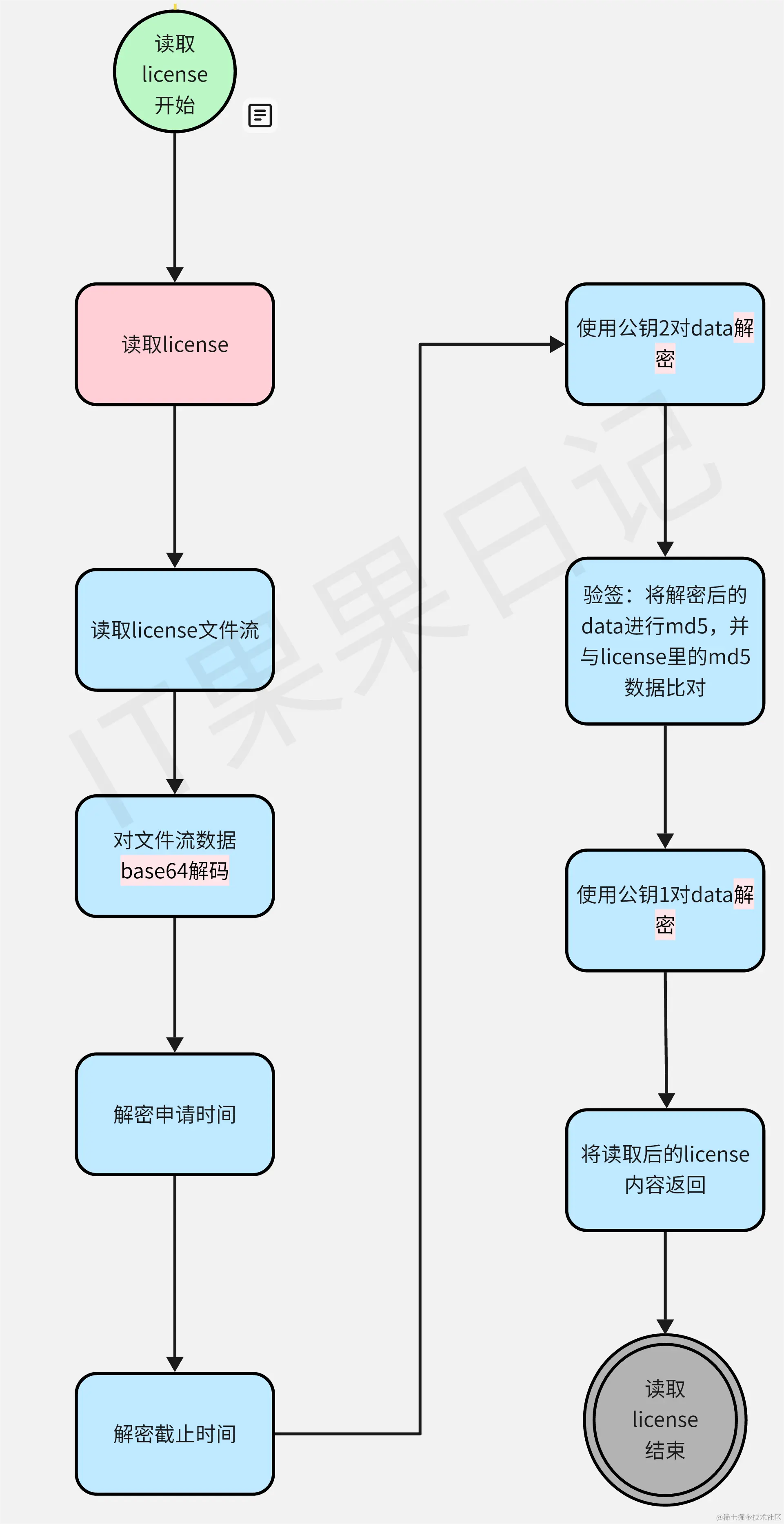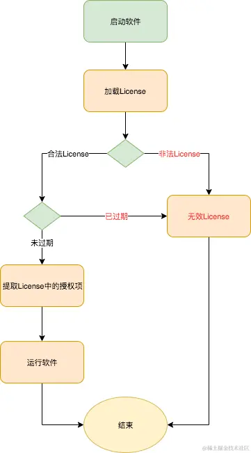 客戶申請到License之后,就可以去軟件上面激活啦。激活License首先判斷License是否合法,檢查文件頭魔數(shù)和分隔符是否正確,檢查License是否過期等。然后就是提取License的授權(quán)信息進(jìn)行驗簽比對。如果有必要,還可以檢查授權(quán)信息里攜帶的MAC地址是否與安裝設(shè)備的MAC地址匹配。如果一切正常就可以通過驗證。