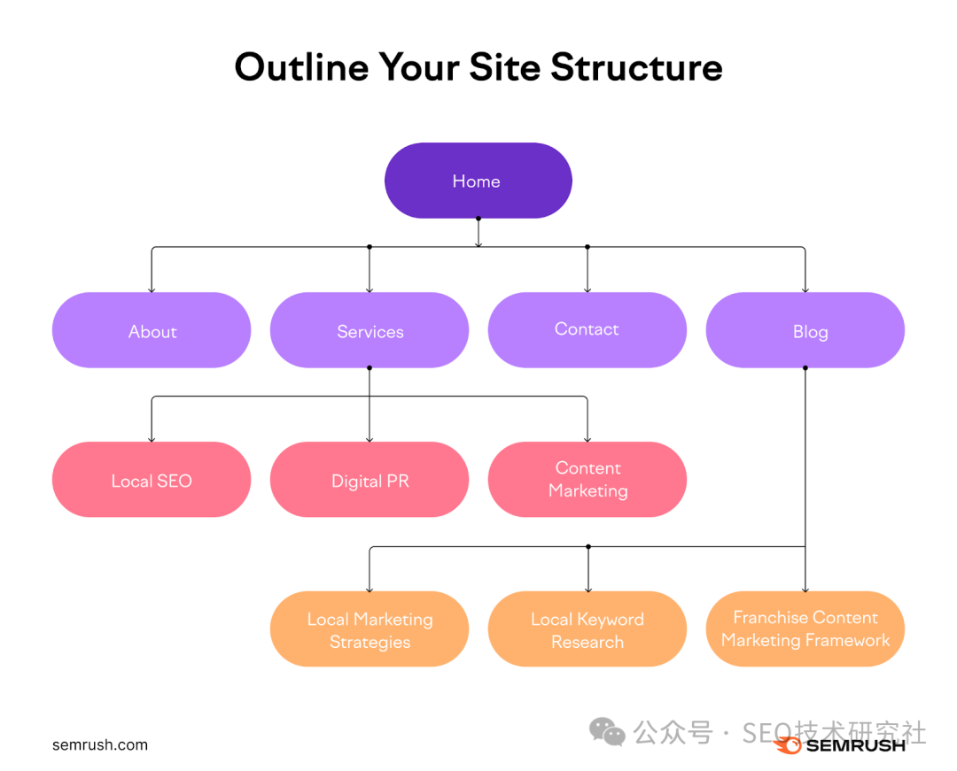 選擇一個(gè)簡潔有效的域名可能需要認(rèn)真的時(shí)間和思考。但這是值得的。 2. 概述您的網(wǎng)站結(jié)構(gòu)和架構(gòu)網(wǎng)站結(jié)構(gòu)是您組織和鏈接網(wǎng)頁的方式。這對用戶體驗(yàn)很重要。以及一種為您的新網(wǎng)站提高 SEO 的方法。 以下是擁有堅(jiān)實(shí)網(wǎng)站結(jié)構(gòu)的主要好處: