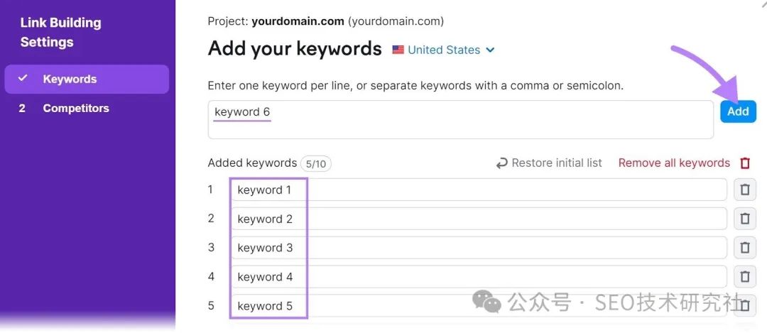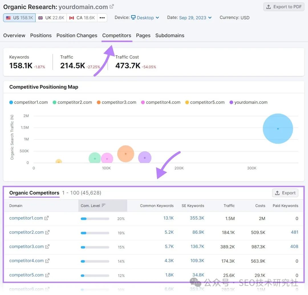 5.研究你的SEO競爭對手SEO競爭對手研究是分析競爭對手的SEO策略、優(yōu)勢和劣勢的過程。 然后利用這些見解來改善你的SEO。 通過競爭對手分析,您可以: