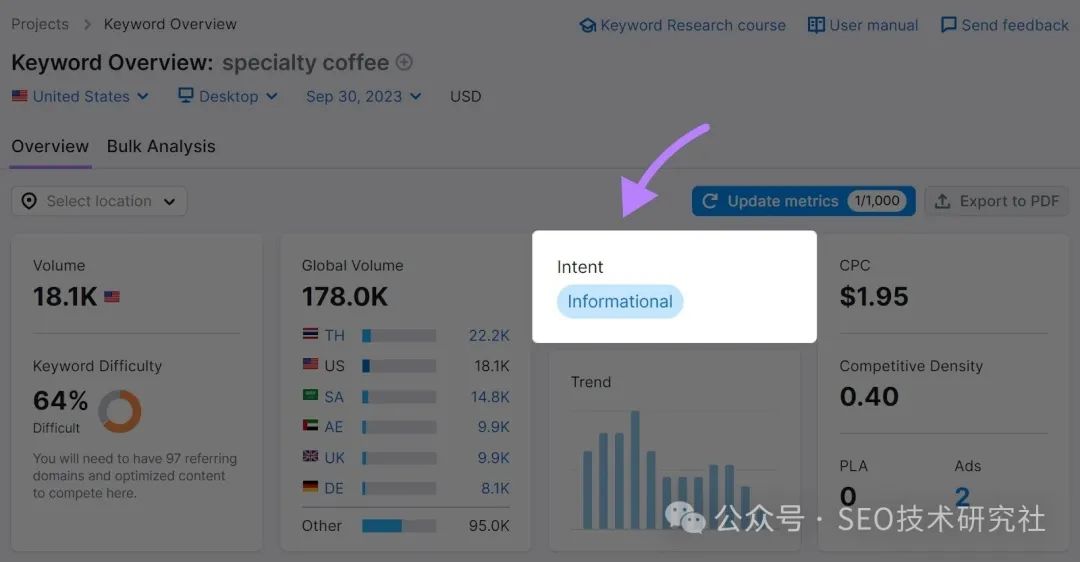 滿足意圖是谷歌的首要任務(wù)之一。 這意味著: 如果你想在谷歌上排名靠前,你需要了解意圖。并創(chuàng)建與之匹配的內(nèi)容。 例如,如果您定位的是具有交易搜索意圖的關(guān)鍵字,則應(yīng)創(chuàng)建一個(gè)頁面,以便用戶輕松購買。不要?jiǎng)?chuàng)建博客文章。 同樣,如果您以具有信息意圖的關(guān)鍵字為目標(biāo),請創(chuàng)建一篇有用且全面的博客文章。不是產(chǎn)品頁面。 要快速找到任何關(guān)鍵字的意圖,請通過關(guān)鍵字概覽運(yùn)行它。 您可以在標(biāo)有“Intent”的小部件框中找到它的意圖。 ![]() 針對頁面搜索引擎優(yōu)化頁面搜索引擎優(yōu)化是優(yōu)化網(wǎng)頁特定元素的過程,以便它可以排名更高并帶來更多流量。 這很重要,因?yàn)樗阉饕嬖趯撁孢M(jìn)行排名時(shí)會(huì)考慮頁面上的SEO信號(hào)。 一些頁面SEO最佳實(shí)踐包括。
