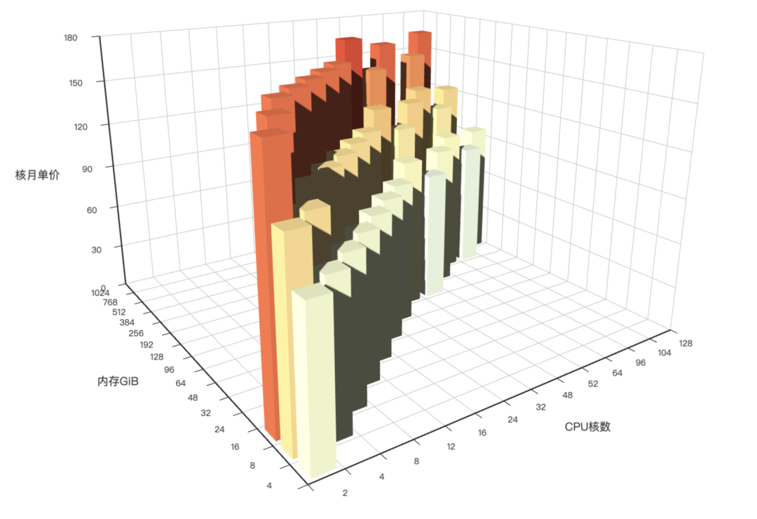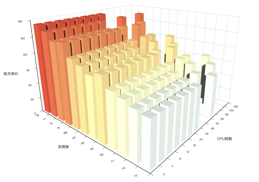 實(shí)例族對價格的影響實(shí)例族對價格的影響主要取決于三點(diǎn):內(nèi)存配比,芯片架構(gòu),實(shí)例代際。 首先,同一實(shí)例族內(nèi)的實(shí)例單價與 CPU 核數(shù)無關(guān),即最終算力部分的價格線性正比于 CPU 核數(shù)。因此不會出現(xiàn)規(guī)格越大,單價越便宜或越貴的現(xiàn)象(實(shí)例規(guī)格越大,性價比越低!)。