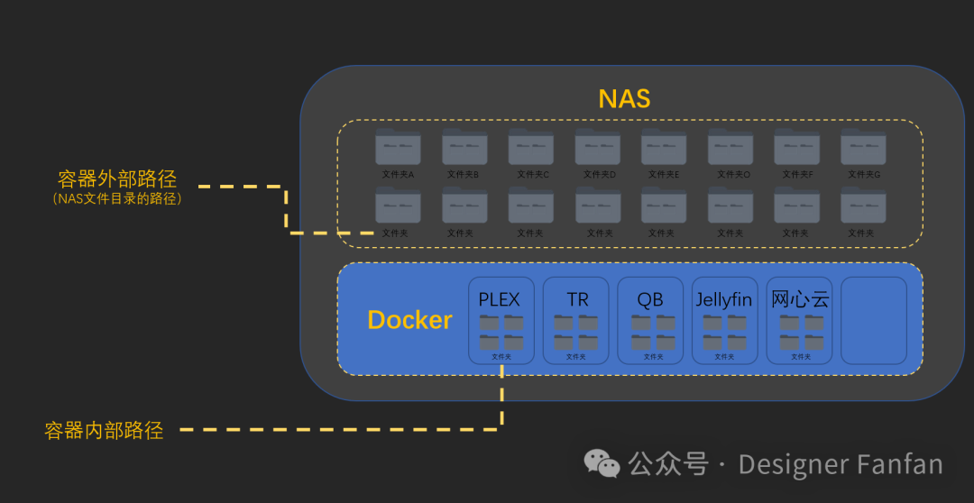 DOCKER的玩法在NAS的玩法中屬于高階玩法,如果說NAS打開了你新世界的大門,那么Docker絕對(duì)是新世界必不可少的調(diào)味品,因?yàn)樗鼰o(wú)所不能。如果使用NAS,你不玩Docker,那么你就會(huì)損失很多樂趣。在威聯(lián)通NAS系統(tǒng)中,有個(gè)Container Station,這個(gè)就是用來部署docker容器的。玩了這么就,其實(shí)在docker部署的過程中,遇到最大的問題就是文件夾路徑掛載這部分,搞不明白就經(jīng)常會(huì)不知所措。但一旦搞明白了所有關(guān)于docker部署的問題基本上迎刃而解了。因?yàn)槲乙膊皇翘貏e清楚他的原理。我只知道docker是類似于虛擬機(jī)之類的東西。以下內(nèi)容為我個(gè)人理解,如果有不對(duì)的地方,可以糾正,我無(wú)條件接受。在nas里面劃分出來一個(gè)小空間,把相關(guān)的軟件裝進(jìn)去。docker的安裝過程有個(gè)比較重要的一點(diǎn)就是內(nèi)部路徑和外部路徑。這里要清楚docker內(nèi)和docker外兩個(gè)概念。內(nèi)部路徑指的是在docker容器里面的路徑,用于存儲(chǔ)運(yùn)行docker鏡像要用到的系統(tǒng)文件。外部路徑相當(dāng)于容器內(nèi)部路徑的映射。實(shí)際的下載、文件存放路徑都是在外部路徑中。