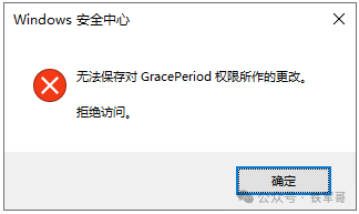 可以看到,該注冊(cè)表項(xiàng)下面有一個(gè)二進(jìn)制注冊(cè)表數(shù)據(jù),我們只要?jiǎng)h掉這一項(xiàng)就可以了。但是,如果我們是首次操作的話,一般是沒(méi)有權(quán)限的,需要右擊GracePeriod選擇“權(quán)限”變更注冊(cè)表的權(quán)限。