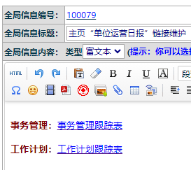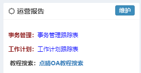 維護(hù)我的桌面鏈接:表示輸入內(nèi)容后僅自己可見;上面圖例中,我輸入了點(diǎn)晴教程搜索的鏈接。 如需要全體員工可見,需要點(diǎn)右側(cè)的維護(hù)全局運(yùn)營報(bào)告,需要有管理員權(quán)限才能看到: