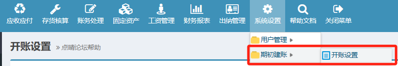 點(diǎn)擊進(jìn)入開(kāi)賬設(shè)置