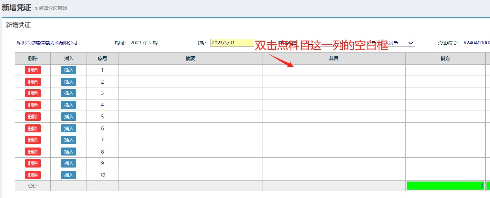 新增科目的內(nèi)容,雙擊點(diǎn)中科目這一列的空白框