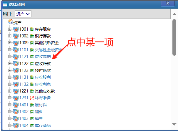 然后選擇某一項(xiàng)的科目,點(diǎn)中即可