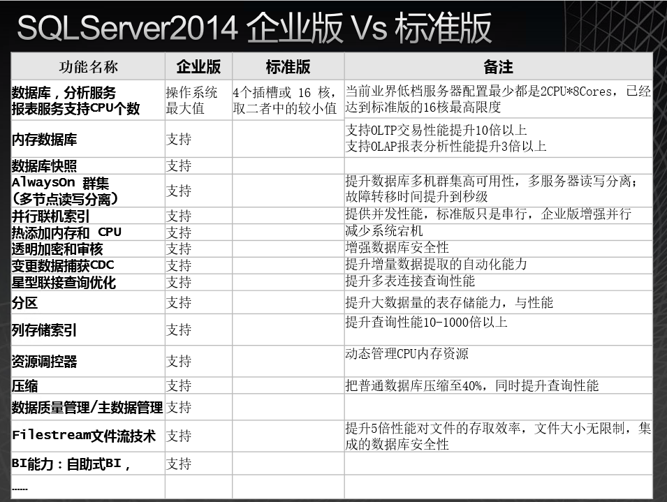 [點(diǎn)晴永久免費(fèi)OA]MS SQL Server2014企業(yè)版&標(biāo)準(zhǔn)版功能比較