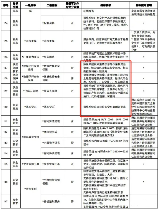 采購標(biāo)準(zhǔn):政府采購國產(chǎn)化需求標(biāo)準(zhǔn)-財(cái)庫[2023] 信創(chuàng)產(chǎn)品覆蓋面廣,各類產(chǎn)品標(biāo)準(zhǔn)不一。但核心離不開自主可控,自主開發(fā)、不受制于人。 2023年12月26日,財(cái)政部、工信部共同發(fā)布臺(tái)式機(jī)、操作系統(tǒng)、筆記本電腦、一體機(jī)、工作站、服務(wù)器、操作系統(tǒng)、數(shù)據(jù)庫七種IT軟硬件的需求標(biāo)準(zhǔn)。采購人應(yīng)按《需求標(biāo)準(zhǔn)》進(jìn)行采購。 例如《操作系統(tǒng)政府采購需求標(biāo)準(zhǔn)(2023年版)》中,對(duì)數(shù)據(jù)安全保障、代碼無風(fēng)險(xiǎn)等多項(xiàng)安全指標(biāo),要求除用戶授權(quán)采集的信息外不采集其他數(shù)據(jù),相關(guān)信息采集無安全風(fēng)險(xiǎn),相關(guān)數(shù)據(jù)存儲(chǔ)在中國境內(nèi);操作系統(tǒng)廠商可提供源代碼,源代碼可供第三方機(jī)構(gòu)審查,代碼知識(shí)產(chǎn)權(quán)無風(fēng)險(xiǎn),無惡意安全漏洞或后門,代碼可追溯、可重構(gòu)。