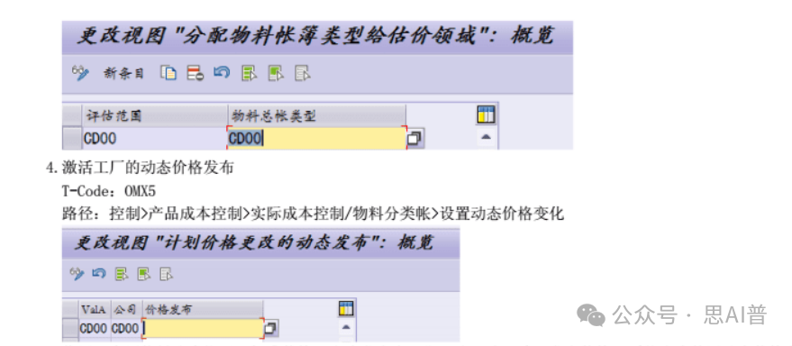 作用:啟用物料分類帳后,標(biāo)準(zhǔn)價(jià)格只允許發(fā)布在下期,為了防止遺漏發(fā)布價(jià)格,系統(tǒng)允許使用動(dòng)態(tài)價(jià)格發(fā) 布。舉例說明:A物料在1月份標(biāo)記價(jià)格,滾算日為2月1日。2月1日是沒有通過CK24發(fā)布價(jià)格,如果啟用動(dòng)態(tài)價(jià)格發(fā)布,當(dāng)2月1日后勤對(duì)A物料發(fā)生任何一筆產(chǎn)生會(huì)計(jì)憑證的業(yè)務(wù)時(shí),會(huì)自動(dòng)將新價(jià)格發(fā)布至2月1日,也就是說,在第一筆業(yè)務(wù)發(fā)生的時(shí)候,產(chǎn)生的會(huì)計(jì)憑證除了物料移動(dòng)自身所對(duì)應(yīng)的憑證外,同時(shí)會(huì)附帶一張價(jià)格修改憑證。 注意:不建議激活動(dòng)態(tài)價(jià)格發(fā)布,目前該功能存在 bug,激活后將可能導(dǎo)致物料在主數(shù)據(jù)下的標(biāo)準(zhǔn)價(jià),與物料分類帳中的標(biāo)準(zhǔn)價(jià)不一致。 目前這個(gè)問題沒有很好的解決方案,對(duì)于生產(chǎn)機(jī),建議聯(lián)系 SAP 直接改表,統(tǒng)一兩邊價(jià)格;對(duì)于測(cè)試機(jī),可直接重置物料分類帳,并取消激活動(dòng)態(tài)價(jià)格發(fā)布。 5.定義材料更新結(jié)構(gòu) T-Code: 0MX9 路徑:控制>產(chǎn)品成本控制>實(shí)際成本控制/物料分類帳>物料更新>定義材料更新結(jié)構(gòu) 剩余部分內(nèi)容請(qǐng)自行下載查看: 備用鏈接:
