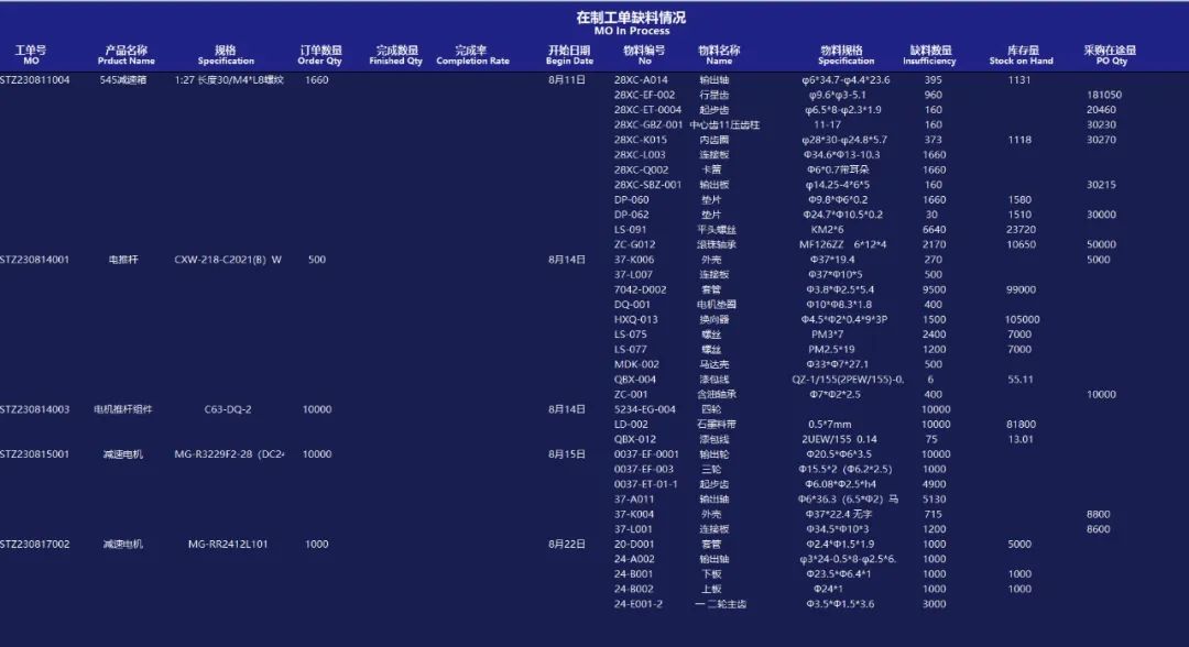 生產(chǎn)看板 每家企業(yè)對生產(chǎn)看板的要求都不相同,因此生產(chǎn)看板基本都需要定制開發(fā)。