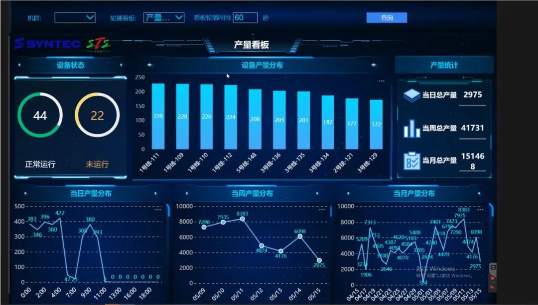 設備產(chǎn)量看板 同上圖需要數(shù)據(jù)采集盒,每隔60秒采集一次數(shù)據(jù)。
