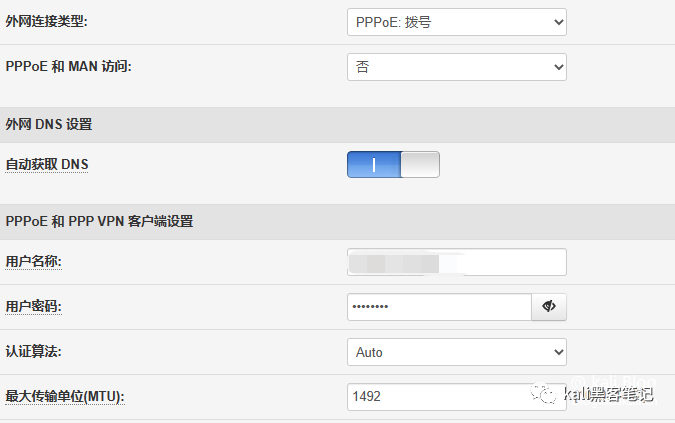 然后登錄路由器,設(shè)置上網(wǎng)方式為撥號(hào)上網(wǎng)(PPPOE)